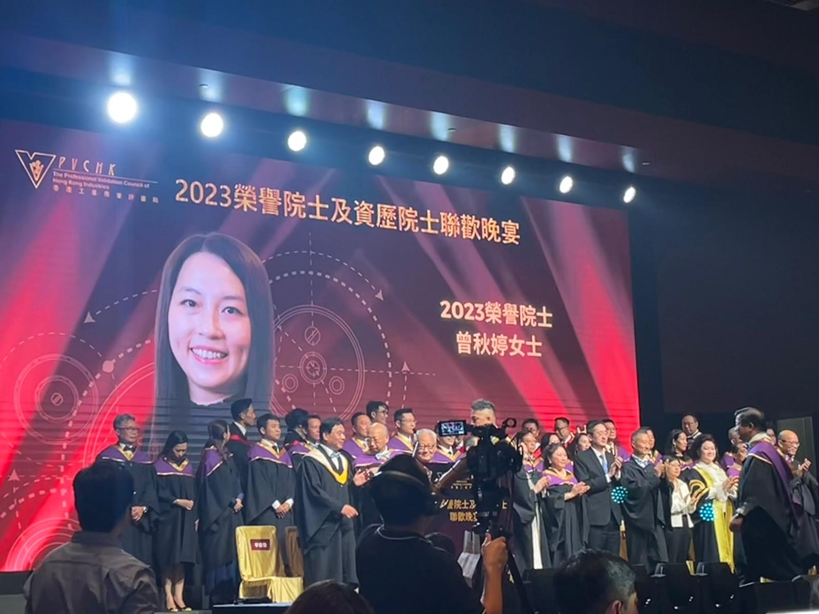 熱烈祝賀劉妍彤主席及曾秋婷主席榮獲2023 香港工業專業評審局榮譽院士