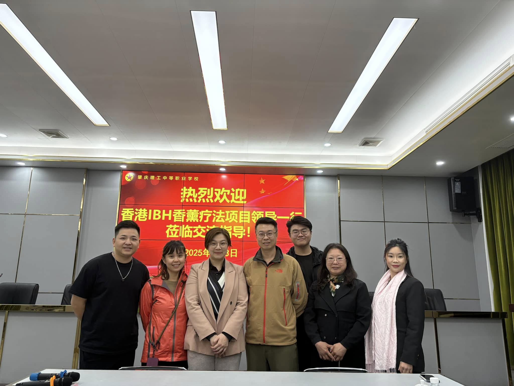 IBH香薰療法項目主席曾燕妮女士於2025年1月3-4日帶領執行委員會骨幹成員參與了國家重點的肇慶理工職業學校參觀及考察,獲校方以最高級別接待,第一天下午除參觀及了解校方的各職系培訓,又與校方領導們深度交流,了解校方的教學方針及令人動容的使命,洽談未來教學合作空間,更獲校方創辦人梁承華校長接見交流。