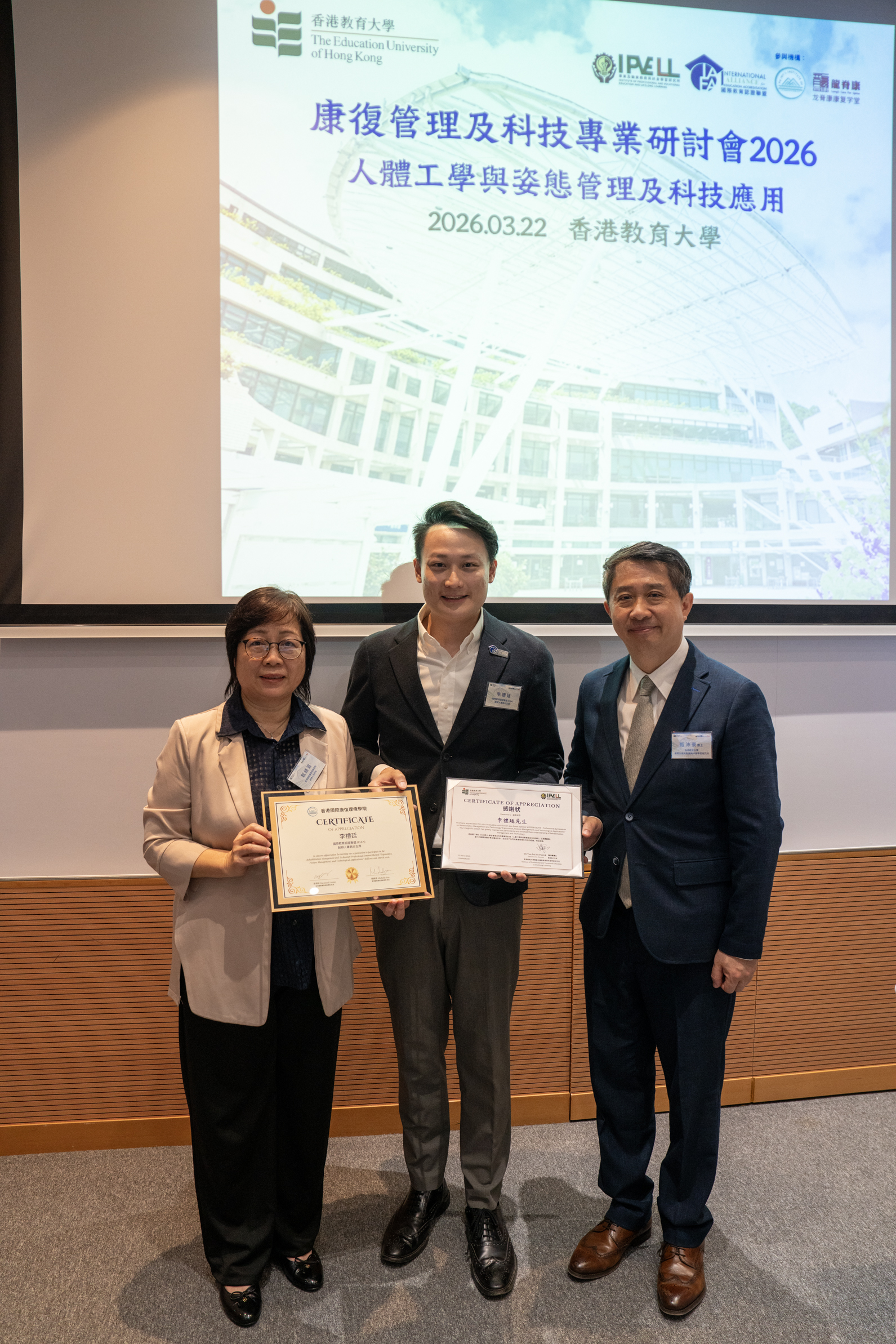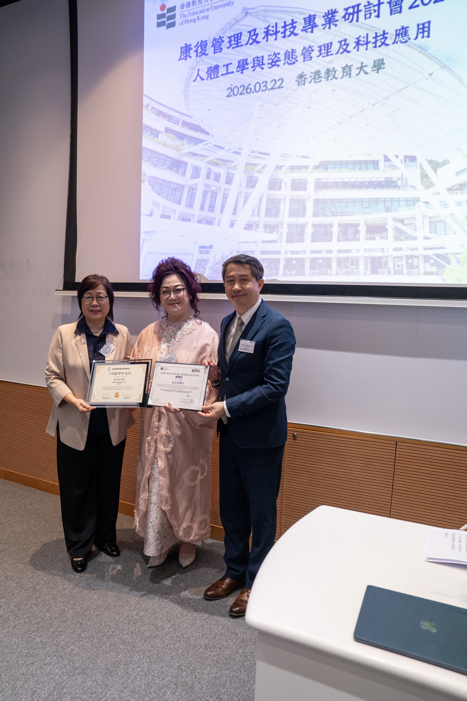 IBH創會會長 彭玉玲博士及IBH執行會長 李禮廷先生於2026年3月22日出席了由香港教育大學、專業及職業教育與終身學習研究所、國際教育認證聯盟 IAEA主辦的人體工學與姿態管理及科技應用研討會擔任嘉賓。